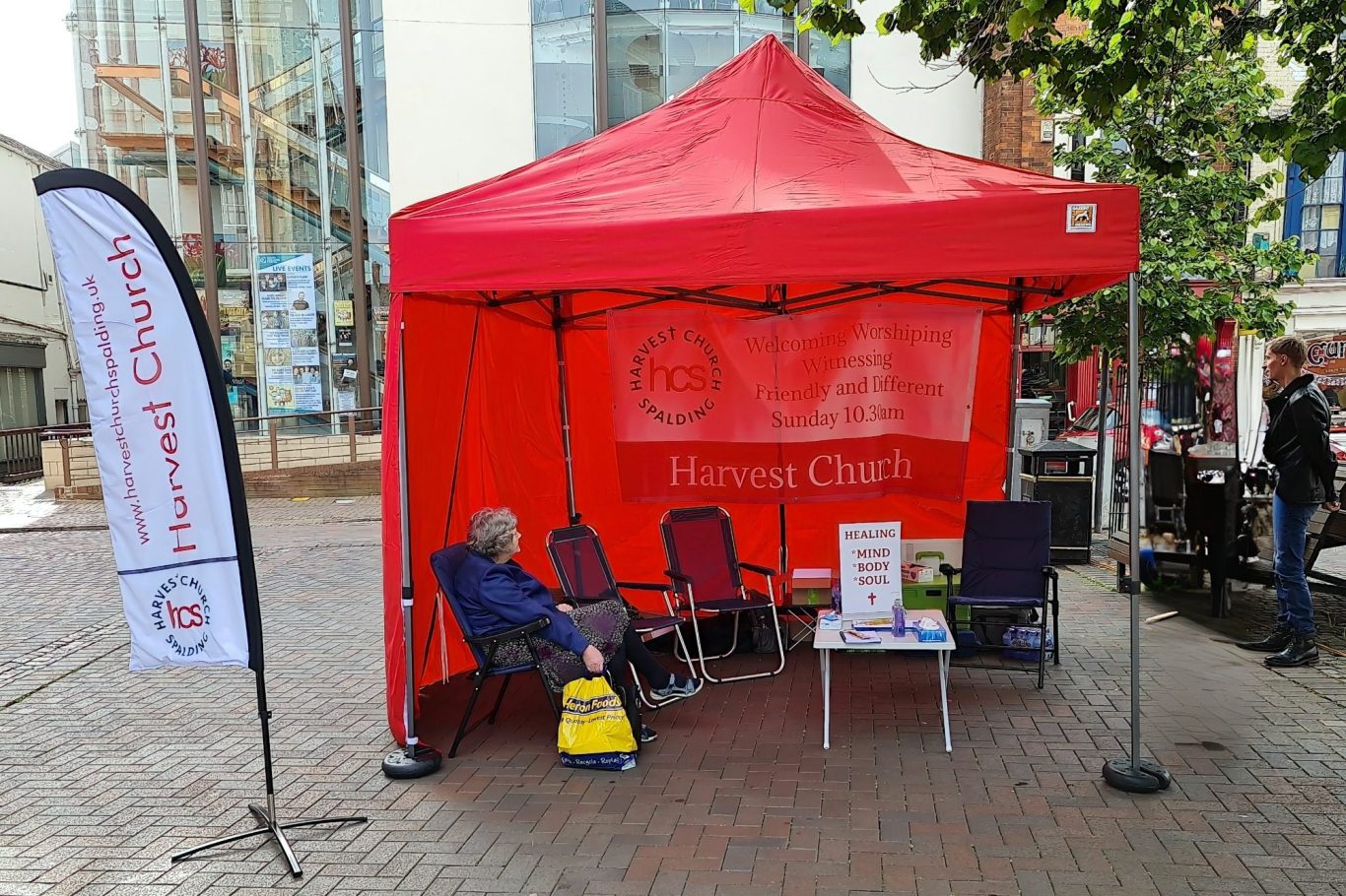 We are in Spalding Marketplace, once a month to talk and pray with anyone who would like a friendly conversation. We want to introduce you to Jesus, who can give you new life.